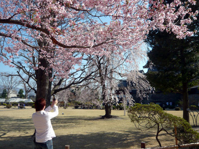 本日はETCで\1,000走行に乗っかり、片道約200kmの松本城に行って来ました。右肩の故障もあるので、朝、接骨院に行ってほぐしてもらってから・・さすがにいいお天気で長野でも外気温が25℃もあり、Tシャツ1枚でも行動できそうな陽気でしたよ。お昼はるるぶに載ってた蕎麦屋さんでお蕎麦を食べましたが、コチラは・・・・?でも、松本城は綺麗で、桜もばっちり満開!ちなみに携帯で桜を撮影しているのは私です。(妻が後ろからデジカメで撮ってました^^)本当に天気がよく、とてもいい気分で散歩ができました。観光客が多く天守閣に登るのに30分以上もかかっちゃいましたが、天守閣からの眺めもアルプス山脈が望めてよかったです。時計博物館にも行きたかったのですが、松本城で時間を取りすぎて、閉館してしまったのが残念です。また行きたいですね。でもこれで、国宝4城:姫路城、彦根城、犬山城、松本城の天守閣全制覇です^^