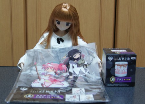 部屋を片付けるとなんやらと…一番くじ 劇場版 魔法少女まどか☆マギカをローソン行った時にしてきたのだそうな…最近というと サイダーの缶買ってきたときでしょうねぇ…クジ結果というと写真の通りG賞 グラス H賞 クリアファイル【3枚セット】まぁラバーマスコットとかよりかはましかな?ポスターは貼るとこないしねぇ…グラスとクリアファイルなら実用的。。かなぁ?