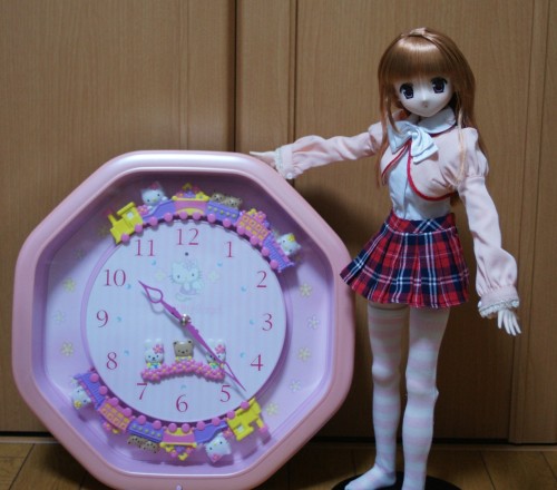 Hallo KITTYカラクリ時計です娘が大変欲しがって…(いたらしい)たまたまオフハウス(リサイクルショップ)で定価10000が歳末セールで未使用2800円欲しい欲しい~~とねだられて…((((((^_^;)ちなみにAishiyaさんお気に入りのときメモカラクリ時計(掃除に下して大きさ比べてみた)少しキティのからくりのほうが大きいポイ・・・(立っている陽菜ちゃんは48センチだよ)そしてこのカラクリ0分になるごとに曲が変わる上に電車がクルクル回るのですよ・・・まぁとても娘はご機嫌ニコニコ。。。来年中学なのでお部屋でお勉強させないとなので時計ぐらいは好きな物つけさせてもね(゜-゜)