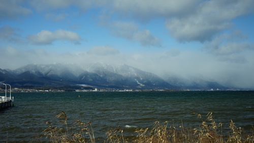 今日の比良山だよ先日の雪で雪化粧なの。風が湖岸は強くて髪の毛が風でくちゃくちゃ(*´•ω•`*)…こちらはピエリ内部からの撮影だよ。平日だからこそ撮れたとも。雪化粧された景色って良いよね。ただ。。今週末の大雪予想は(´・ω・`)