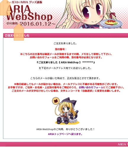 毎年恒例の冬コミに行けなかった人への対策のAugustの冬コミ関連の通販が始まったよAugust Aria Web Shop今回は商品No.01 『オーガスト/ARIA 冬コミセット2015』商品No.04 『クリスタルカレンダー2016【カードのみ】』商品No.05 『汐美学園公式校章入り革財布』商品No.06 『トラベリング・オーガスト2015 Blu-ray』今回はいつも通りカレンダーは1年での必須なので冬コミセットとカレンダーカードそしてトラベリング オーガスト BDは外せないそして今回は抱き枕でなくて『汐美学園公式校章入り革財布』高いけど今回はこれが欲しかったのでありますよ…そして無事通販完了なのでありますよ。