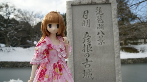 琵琶湖八景彦根城へ…であります城の入口手前には石碑が…そして彦根城外堀…よく見ると外堀の水は凍りついてる…そして太鼓橋へ(天守閣への通り道)でありますそして彦根城観覧入場券を購入…するとそこにはひこにゃんも。。。そして天守閣への回廊…坂は急だけど短い…登りきると国宝 雪の彦根城(帰りに夕日と…)でありますそしてここにもいた!ひこにゃん陽菜ちゃんと彦根城で記念撮影なの。そして今日連れてきた陽菜ちゃん 千堂瑛里華ちゃん キュポまどかちゃんと彦根城そして天守閣入口へ(撮影当日の読売新聞の写真もここだった…後から知った)ちょっとお城をぼかしてみて…そして少し離れた高台へ…そして時間がら 夕日が出てきて夕暮れの彦根城と瑛里華 ちゃん(いつの間にか16時半に…)そして陽菜ちゃんも…(瑛里華 さんから衣装拝借)そして陽菜ちゃん少し横向いてものふけって…もう1枚、お城をぼかして…最後に彦根城から彦根市街を一望して岐路へ…なのであります雪のお城っていいよね有給使って良かったでありますよ(同じ考えの人も何人かいた。。。)