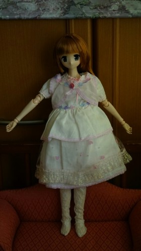 陽菜ちゃんお着替えしてお出かけであります今回の衣装は実はまんだらけで……着れるか分からなかったけど可愛いかったので。今回のお出かけは梅園なのでこの衣装をチョイスなのであります横から見たらこんな感じだよ後ろから見ても可愛いよ白と薄いピンク色で可愛くて陽菜ちゃんに似合ってるかな?