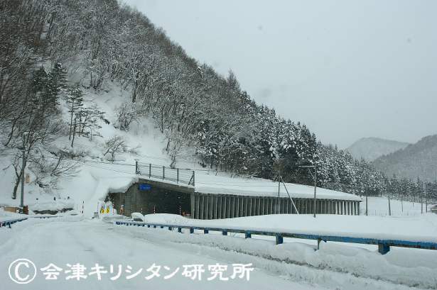 これは雪よけ(スノーシェッド)ではありません。山の斜面から落ちてくる石や岩を避けるために「ロックシェッド」です。この写真は、旧舘岩村と旧伊南村の境界になっています。このスノーシェッドは旧伊南村になります。
