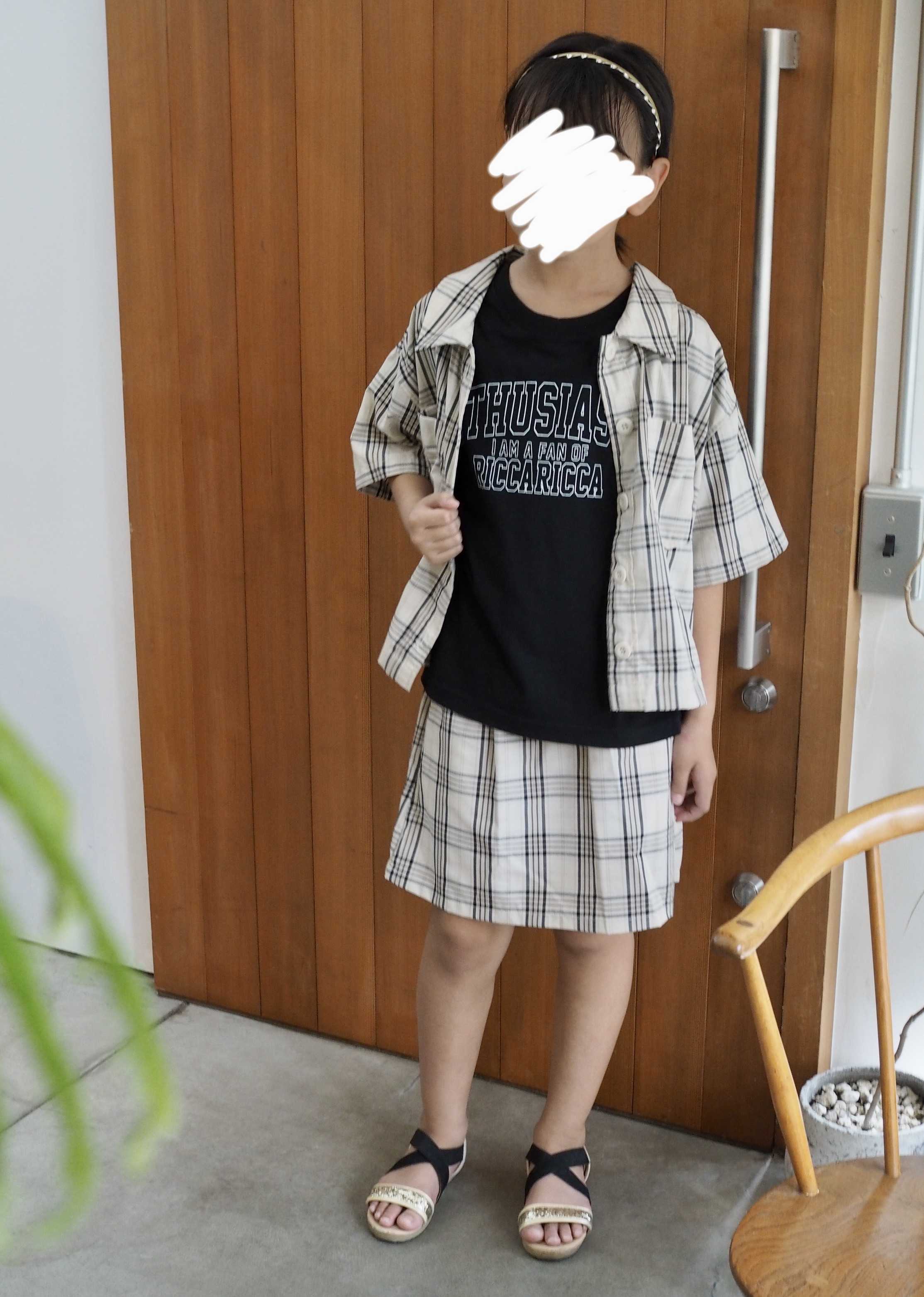 Tシャツ、スカート、シャツジャケット、それぞれ別々でも着られて