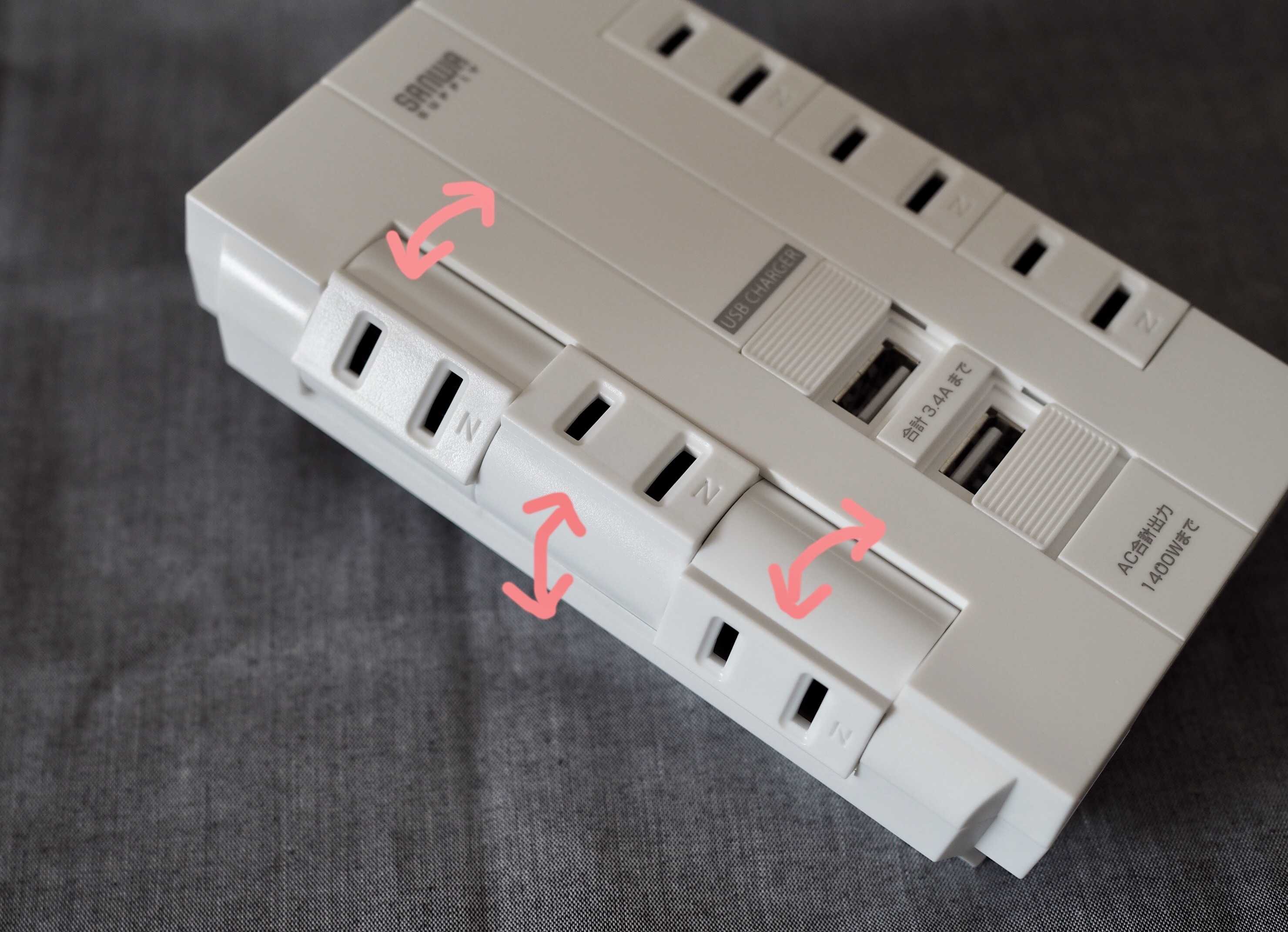 大きなアダプタを差しても、隣の差し込み口に干渉しません。