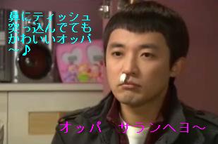 今回タイトル自分にも言い聞かせてる言葉ですオッパご飯食べれてるかなぁ~~オッパお元気ですか??昨日、職場に取引先の韓国人の方(2人)が来ました~今の私の職場年配の方ばかりなのでちょっと自由にさせてもらってます(ん??勝手にやってるだけ??)机の上はKchan(オンニなのにchan付けで失礼します)が作ってくれたオッパカレンダーそしての背景画像もオッパそんな私の机の上を見た韓国人の方が『ユーアンジェウクペン??』って聞いてきたぁ~思いっきり日本語で『はい!!大好きです』って言っちゃったやっぱりハングルちゃんと勉強したいですハングルで会話してるのを聞いたら涙出そうだったけど、単語単語が分かるとこあってちょっと楽しかったですお帰りの時は『チョシメソカセヨ~』って言ってみたら笑顔で『アンニョ~ン』って言って帰って行きました~『あんにょ~~ん』って言葉・・・あ~~またオッパを思い出してしまってサランヘのお気に入りシーンオッパの『アンニョ~ン』落ちるとこまで落ちていましたが今は元気ですおっぱ~~ゆっくり出来てますか~~??オッパだらけの私のとうとうダメみたいです~昨日知らない内に電源が勝手に切れてたぁ~~完璧にぶっ壊れる前に買い換えないと・・・今月中には変えたいなぁ~~でもショップに行く時間がオプソヨ~~~半日お休みしないと・・・