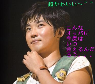 私のお気に入りブログに入っているひろみん☆さんのブログでお話出ていますが、オッパが出張に行くそうです何で?何がオッパの中であったの??お休みするオッパを待つのは確かに慣れてる?けど今回はいつものお休みとちょっと違う元気な姿、笑顔のオッパで戻って来てくれるまで待ってますそんな風に思いたいし思ってるけど、悲しくて仕方ないこの気持ちはどうすればいいんでしょう・・・オッパ・・・こんなファンでごめんなさい勝手な自分の気持ち書いた日記になりましたが、書かずにはいられませんでした。すみませんm(__)m うん。でもオッパ~ゆっくり休んで、元気になって戻ってきてください。いつまでもいつまでも待っています。
