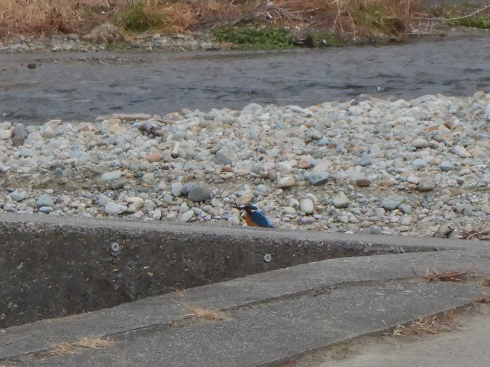 堰の魚道のところにカワセミがいました。