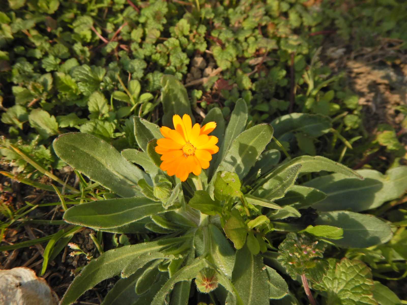 暖冬はいつまで続くのか、フユシラズが一輪だけ咲き始めていました。