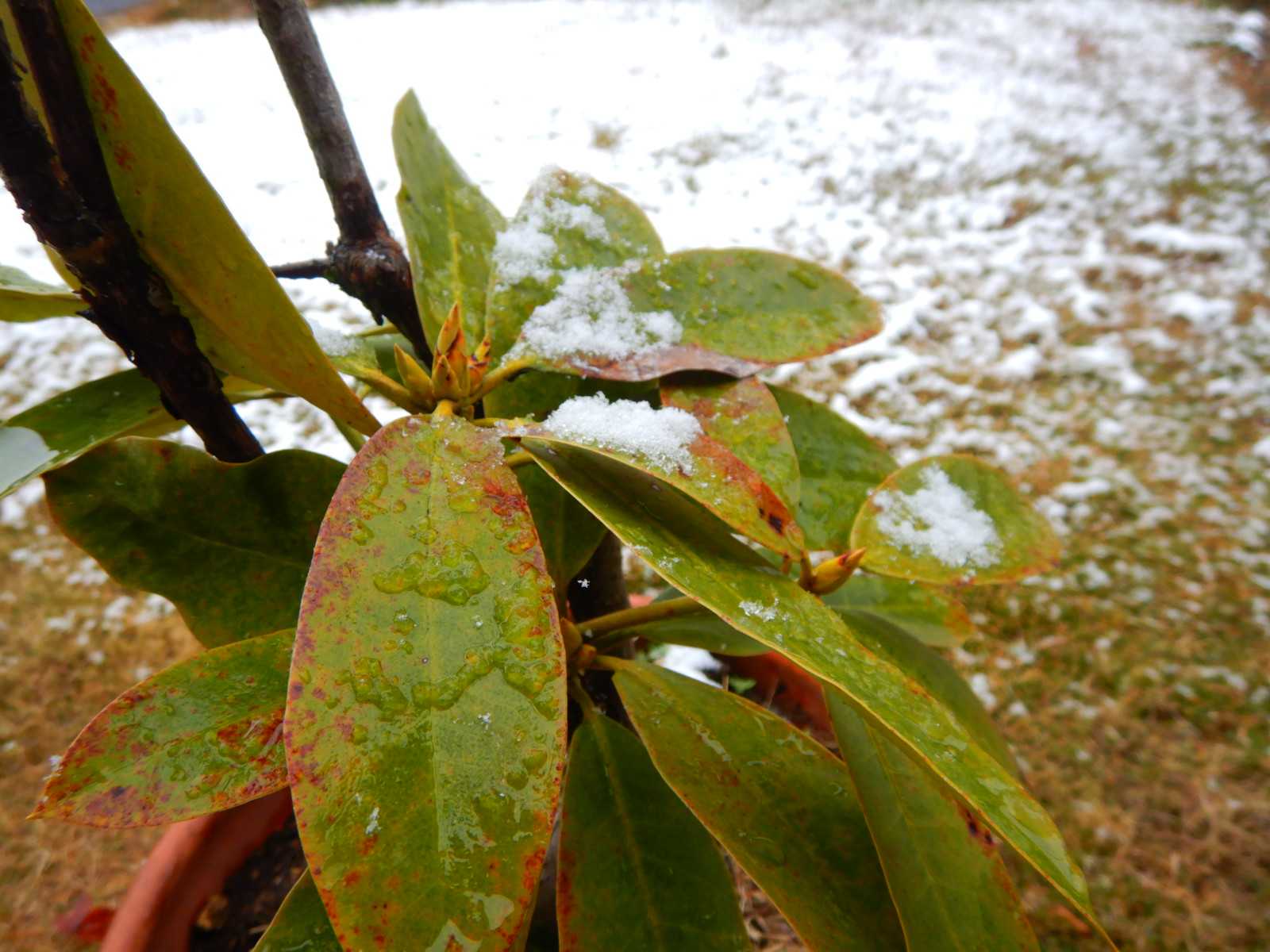 今朝の最低気温は-3.3度でこの秋一番の冷え込みでした。11月で氷点下を記録したのは昨日の-1.7度についで2度目、いよいよといった感があります。小春日和で今日の那須岳はいくらか霞んで見えます。茶臼岳、那須連山から西に伸びた那珂川水源の山は、一際白く輝いています。お茶の木の花も長く咲いています。冬の前にフユシラズが咲いています。落ち葉の布団の中にハナタデを見つけました。