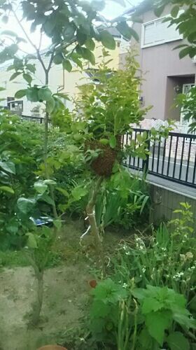 我が家の庭のさるすべりの真ん中にデカイ蜂の巣?…いーや、蜂のかたまりが😱 これは大変!と市役所に電話。 見に来てくれました。 そして、 『あぁ、これはみつばちですね🐝 蜂の分蜂といってどこかの巣箱から蜂が集団で出てきて固まってるんですよ。1週間もしたら新しいところへ行くからこのままで大丈夫ですよ。いたずらしなけりゃ、刺されません🐝』と。 でも、これ…気持ち悪い😣💦 近所のママ友も私と義母と市役所の人が話してる様子に気づき、分蜂の話を関心をもって聞いていた。 それから3日経ち…まだ庭にいます。 スズメバチじゃなくて良かったけど😅