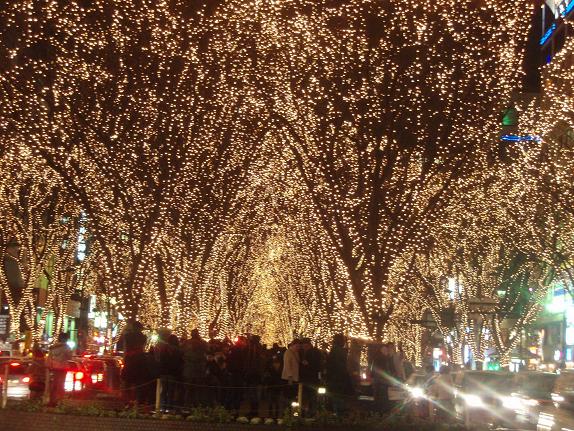 仙台の冬の風物詩、光のページェントだ。4列のケヤキ並木に灯りが点けられ光のアーチが、ず~~っと続いてるのだ。中央の2列の間はグリーンベルトで、歩けるようになってる。寒い冬、人々の気持ちをホッと暖めてくれる今や仙台には欠かせないイベントだ。市民や企業の募金だけで運営されてる。家族連れやカップルで毎晩毎晩賑わっててみんなニコニコしてるから、そんなみんなの顔を見てるとこっちまでニコニコしてきちゃう。周りがみんな楽しそうにスキーしてるとこっちも思わず笑みがこぼれるのと同じだ。あ、この写真は、去年の今日アップしたものの使いまわし(笑)今日は、一般的には仕事納めでうちの会社も仕事納めだったけどそんなことより、個人的には誕生日なのだ。でも、みんな忙しくて、そんなことに構ってられないようで・・・思い出してくれる人なんか居ないのだ。毎年のことだから慣れてるけど。子供の頃は、クリスマスと誕生日を一緒にされてプレゼントはひとつだけだった。それがすっごくイヤだったけど忘れ去られるよりは、まだマシだったのかも笑)ま、他人に私の誕生日を教えると9割がた反応は決まってる。「あら、暮れの忙しい時に・・・」・・・そんなもんさ。30日からは岩手へ2泊で年越しスキー。泊まりは温泉旅館だからユックリできそう。ただ、去年は部屋の中に次々と湧き出てきたカメ虫くん同じ旅館に泊まるんだけど、今年はどうだ?(笑)さて、ブログの更新もこれが今年最後ということでまた来年会いましょう。みなさんも、いろいろ予定があるでしょうからたくさん、たくさん、たくさん、楽しんで下さいね。それでは、よいお年を~~!! バイバイ。あ、歳末助け合いクリックもお願いします(笑)