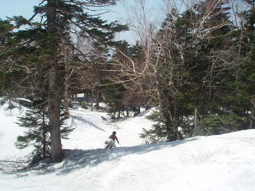 春は天気の良い日しか滑りたくな~い。春スキーの季節だ。ザラメ雪や、ポカポカ陽気の下で滑るのは大好きなんだけど春は天候を選んでしまう。雨の日は行かない。ビショビショになってまで滑りたくはない。雨の中だとゴーグルに水滴が付いて前が見えなくなるし。あと、寒の戻りで気温が急に下がった時も行かない。一度ゆるんだ雪が固まって、全面アイスバーンになるから。それに、春スキーってのは青空の下、薄着で汗なんかかきながら滑る、ってイメージがあるから晴れてないとテンションが上がらない。雨の日はダメ、寒い日もダメ、行ける日は限られちゃうのだ。でも、冬の間は毎週行ってたぞ。なんで行けてたんだ?冬は雨が降らないからだ。雪になるからだ。春だったら大雨になる天候でも、冬なら大雪だ。喜び勇んで深雪狙いに行っちゃう。滑ってても、雪ならウェアが濡れることはない。パッパッと払えばいい。冬は、寒さだって気にならない。寒い季節に、さらに寒い山に行くのだから、寒いのは当たり前だ。そんなこと納得済みで出かけるのだから平気なのだ。寒けりゃ寒いほど雪質は良くなるし。こう考えると、冬のスキーってのは晴れてもイイ、雪が降っても吹雪いても大丈夫、寒くたってイイ、とどんな天気でも楽しめる、まさに全天候型スポーツじゃないか。冬の厳しい気象条件の中、天候に左右されやすいスポーツだと思ってたけど実は、天候を選ばないものだったのか。・・・なんて、ワケ分かんないこと言って、楽しかった冬を偲んでもショーガナイ。現実に今は春だ。これからますます暖かくなって、プロ野球を見に行ったりゴルフをしたりするとスキーのこともだんだん頭から離れてしまうのだろうね・・・。話は変わるけど、春といえば最近、街なかに新社会人と思しき若者が溢れてる。男も女も、取って付けたような似合わないスーツを着てるからすぐ分かる。女の子は、慣れないパンプスを履いて、歩き方が下手くそだ。カカトに体重を乗せたまま、腰を落として歩いてる。そんなのを見ると、お節介ながら言ってあげたくなっちゃうのだ。「ねぇ、お嬢さん。後傾してるよ」・・・まだまだ私の頭の中は、スキーのことでイッパイみたい(笑)もう滑り納めしたって人も、何言ってんのまだまだでしょ、って人もクリックしてチョーダイませ。