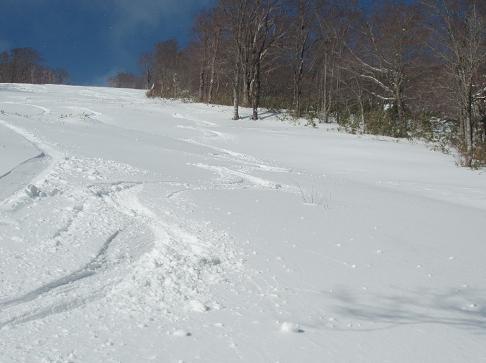 深雪が一番好きだ。こないだ、私はスキー技術の理論が苦手だと書いた。それでも長くスキーをしてれば経験値から導き出した理論の一つや二つは持ってる。自分で思いついたテキトーな理屈なのでとても人に教えたり出来ないけど(笑)まぁ、SAJの理論だって、毎年誰かが考えてるんだろうから私が思い付くか、SAJのお偉いオッチャンが思い付くかの違いで個人の思い付きって点では、似たようなもんだ。内容は別として。(って、内容が大事なんでしょ!)ただ、そんなオッチャンの思い付きを全国でみんな揃って練習するってのは・・・、ちょいと怖い光景じゃない? なんてね。というワケで、SAJのお偉いオッチャンに対抗してtyスキーチームのお偉いオッチャン、ドジボの理論だ。さ~て、珍しく理論ちゅうことで気合入れて書くぞ。ドジボの理論その1深雪の急斜面では、勇気を持ってスピードをつけて落ちていけっ!!ストックを振り上げて大きく交互について、上下運動だけしてれば勝手に曲がるから(笑)いやホント。(え、それだけ? こんなんで理論と言えるのか?)外野の声はほっといて、ドジボの理論その2悪雪の急斜面では、自分の力だけでは曲がりにくいので勇気を持ってスピードの力を借りるのだっ!!その時大事なのは、意地でも上体をフォールラインに向け続けること。どんなにバランス崩しても、無理矢理でも腕を前に出して、胸をフォールラインに向けること。ってか、バランスは必ず崩れるものだから、それをも楽しむ気持ちで。ヒザと足首は一瞬たりとも伸びきらないように。スピードに対応した速い動きや、サスペンションの動きが出来なくなるから。これらを意識すると、ビックリするほど思い通りにスキー操作が出来ちゃうよ。で、理論1も2も急斜面のこと。深雪と悪雪だ。圧雪された整地での理論はない。だって整地では、ギューンとしてビョ~ンと弾めばいいんだもん。・・・これじゃ理論にならないでしょ(笑)ビョ~ン、ビョ~ンって、体ごと弾んで遊んでるのだ。そんないい加減さだから、私って整地の究極の技術カービングができない。ってか、どんなのがカービングなのか知らないので出来てるんだか出来てないんだかも分からない。分からない事をやろうとしても仕方ないから、カービングは出来なくともいいことにした。スキーヤー全員がカービングしなくちゃイケナイってこともないし。カービングスキーだからって、カービングしなくとも構わないし。どうせ次はファットスキーを買おうと思ってるし。それでゲレンデも滑ろうと思ってるし。カービングはどうでもイイや(笑)とまぁ、私の理論なんてこんなもんだ。気合を入れて書いたわりには、内容が無いよう。ククク。ナイヨウがナイヨウ・・・。←ククク。あ、もうひとつ理論があった。滑る時は視線をなるべく前方に。 (なるほど。やっとマトモなこと言ったようだ)そうしないと滑るルートを見つけられずに、木にぶつかっちゃうよ。(・・・って、林の中のことかい!)今日の記事、もちろんSAJを茶化してるんじゃないからね。だからSAJファンも、SIAファンも、CIAファンも、JAF会員もみんなクリックしてチョーダイませ。