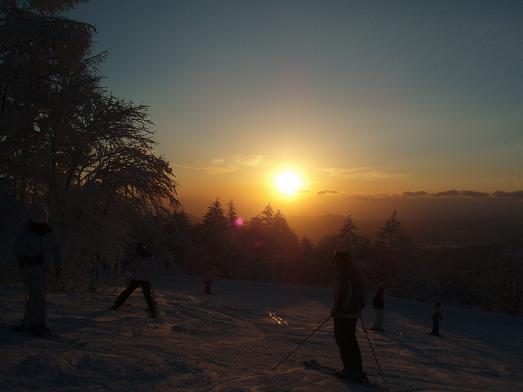 板の間に囲炉裏風のテーブル。いい感じ。この他にも料理が出て、さらに石焼の前沢牛も。・・・ごくん。私達が向かった宿は知る人ぞ知る・・・・、いや、知る人なんていない? 穴場の宿だ。普通にじゃらんネットに載ってるんだけど、空いてる。部屋が5部屋しかなくて、年末でも3組しか入ってなかった。八幡平南温泉 旭日之湯(あさひのゆ)ってとこだ。場所は安比まで20分くらいのとこ。詳しい行き方は・・・・覚えてない(笑)もう一度行けと言われても行けない。田んぼの農道をあちこち曲がって行くので覚えられないのだ。しかもナビが途中で仕事放棄しちゃうし・・・。「目的地周辺です。案内を終了します」って言われても周りには田んぼしかないんですけど・・・。なんの灯りも見当たらず・・・真っ暗で・・・。ま、行きたい人は頑張って行き着いてチョーダイ。料理がとても美味しくてなかでも前沢牛コースがお勧めだ。熱く焼いた石が出てきて、その上に前沢牛を乗せてジューっと焼く。文句なくウマイ。もちろん、他にもたくさん料理が出て鍋もおいしく、最後は鍋にご飯を入れて雑炊にしてくれる。それで、一泊二食¥9,950だ。年末年始でも。やすっ。ここの売りは、なんといっても温泉。近所の人たちにも人気があって、家族でお風呂に入りに来て湯上りにラーメンとかを食べていくのが楽しみらしい。私が入った時も、近所のジィチャンと一緒だった。脱衣所で話したけど・・・・訛りすぎて半分も分からなかった。そのジィチャン、何枚も重ね着してて脱いでも脱いでも下から服が出てくる。あんたは玉ねぎか!(笑)決して立派なお風呂じゃないけど、お湯自体はイイのだ。さて翌日、安比スキー場の手前でちょいと寄り道。ロッジ「タンデム」へ。ここの場所は分かりやすいので、すぐ行ける(笑)コテージタイプのロッジで、部屋が窮屈なペンションとはちょいと違う。集客に苦戦してるペンションが多いなか全室、夕食なしで持ち込みOKのシステムで対象の絞込みをして成功している。オーナーとはお互いのブログへコメントしたりとネット上での付き合いはあるけど、会うのは初めて。先シーズン、「泊まりに行く」と散々言っておきながら結局行けなかったので、ご機嫌伺いということで(笑)ちょっとだけ寄るつもりが、コーヒーをご馳走になっちゃってオーナーがやってるテレマークスキーの話で盛り上がって30分近く居座ってしまった。そのテレマーク・・・・、興味津々だ。新雪を滑ったときの気持ちよさがアルペンの板とは全然違うらしい。どう違うの? と聞いたら「う~ん・・・、言葉では表せないくらい気持ちいい」 らしい(笑)そんなこんなでタンデムでもノンビリさせてもらった私ら気合なし夫婦はやっとこさ安比スキー場に向かったのだった。で、ま、スキーは、ちょこちょこっと。相変わらずゲレンデ端っこや、ちょっとした林の中へ。それで感じたんだけど、安比の雪って夏油や蔵王よりも断然に軽い。ブワッと舞い上がった雪が、フワフワとなかなか落ちてこない感じ。ちょっと・・・くやしい(笑)温泉に入って、鍋を食べるなら日本酒だよね、と思った人もコテージでみんなでワイワイするならビールだよね、と思った人も結局飲まなくちゃいられないの? と呆れた下戸のアナタもクリックしてチョーダイませ。