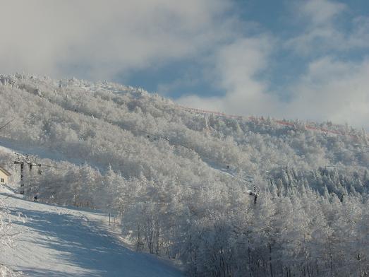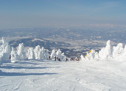霧氷の時の蔵王黒姫コース。プルークの初心者にも気持ちいいコース。どこぞの人気ブログのイントラは、プルークのことをちゃんと、カタカナのハの字って言ってるからいいけど初心者に教える時「カタカナ」ってとこを強調しないで単にハの字って言ってしまうとなかには「?」と思う初心者もいる。昔からこんな都々逸があるくらいだ。「ハの字で滑れと あんたは言うが あたしゃ出来ない ひらがなの『は』」(いや、こんなのないから)さらにこうも続く。「はの字なんかにゃ 出来ないけれど あたしゃあんたに ほの字なの」なんとも色っぽい。(だから、こんなのないってば)音(おん)だけで、ハの字と言われてもすぐカタカナの「ハ」を思い浮かべられるワケじゃない。ひらがなの「は」を思い浮かべちゃったら、それこそ「は?」だ。・・・ククク。ましてや漢字の「覇」なんて思い浮かべた日にゃ、足がこんがらがっちゃう。さらに細かいこと言うようだけど「ハ」の字ってのは、よく見ると何となく、すでに左にターンしてるように見えるし(笑)だから私が初心者に教える時は「三角形」と言ってる。大きい三角形にして~、とかとがった三角形にするとスピード出るよ~、とかって。ま、どっちでもいいけど以前から「ハの字」ってのは分かりやすい例えじゃないような気がしてたから。ま、この機会に発表してみようかなと。(どんな機会じゃい)話は変わって、子供の頃おばあちゃんが「八(はち)の字って、末広がりなんだよ」と言ったのを聞いた私は漢字の「八」を思い付かなくて当たり前のように数字の「8」を思い浮かべてしまった。「8」のどこが末広がりなんだろ? と考えたドジボ少年は当時、神童と呼ばれていただけあって「8」を横にすると「∞」無限大になることに気付きだから末広がりなんだと、ひとり納得したのであった。漢字の八は思い付かなくとも、∞は知っていたってあたりが神童っぽいと言えなくもない(笑)言葉は難しいね。最後に有名な都々逸を。スキーってお金がかかるし、雪山へ運転するのも大変だけどスキー馬鹿は、やっぱりスキーからは離れられないんだよね。「諦めましたよ どう諦めた 諦めきれぬと 諦めた」お後がよろしいようで。←1日1クリックお願いします!!※ カタカナのハの字にしてくださ~い。ひらがなの「は」じゃないですよ~(笑)なんて、レッスンで冗談かましてるであろう、ちゃんみか先生もクリックしてます。(たぶん、ほんとに言ってるとみた)(笑)