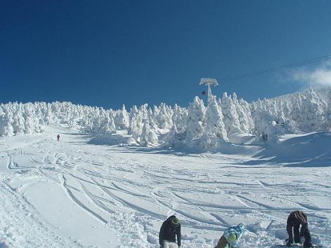 そういえば、去年は11月に2回も滑ったんだ。まだ何も準備してないよ~。焦る。写真は去年の。11月とは思えないタップリ雪の蔵王。破けたCWXを買い換えようと仕事の途中でスポーツ店に寄った。ついでに薄手のミドルウェアっていうかフリースやセーターの代わりに着る薄手のカッチョイイのがないかな?と、探してみた。ただ、チョー寒がりだから薄くたって暖かくなくちゃダメ。ウェアの下に厚手のフリースを着るとなんかモコモコして体が膨らんで見える。今年、ダイエットを諦めた私としては脂肪が厚くなった分、着るものを薄くせねば。つらつら見てたんだけどやっぱり薄手のフリースが一番あったかいのかな~?今度、山系の店も覗いてみよっと。ウェアの売り場をうろついてから板の売り場にも行ってみた。一応スキーヤーだから。ピカピカ光った板たちが並んでる。ずら~~~っと並んでいる。壮観だ。数ヶ月ぶりにこんな光景を見ると買うつもりはなくとも嬉しくなってくる。一応スキーヤーだから。見てみると、あらあら、一段とウエストがくびれてしゃもじ度が増している。見事な、ボン、キュッ、ボンだ。私にとっては、なんか滑りにくそう。これを履いて滑ってるイメージが涌かない。そういった板の中に突然、ズンドーッン!ズンドーのファットスキーが2本。くびれなんかほとんど無く、ズンドーッン!太て~。でも、なんともいいシルエットだ。思わずなでなでしちゃった。これなら滑ってるところをイメージできる。ゴワゴワ雪の横倉の壁をグイグイと滑れそう。他にも秘密のあんなとこや、こんなとこどこでも行けそうだ。スピード上げて。・・・ほしい。今履いてるフォルクルちゃん・・・早く壊れろ!あ、うそ、うそ。まだ壊れないでね(笑)まずはブーツが危ないんだから。ショーガナイからまだ当分はフォルクルでブイブイ言わしたるか。と自分に言い聞かせつつ店を出てきたのだった。あ、CWX買うの忘れた・・・。まだまだ準備不足の人も準備万端の人もっていうか、もう滑っちゃった人もみんなクリックしてチョーダイませ。