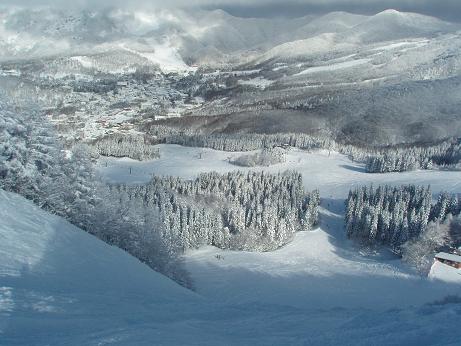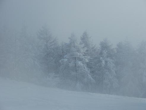 正月は天気が悪くて写真を撮らなかったので…ってか、新雪遊びに夢中で撮れなかったので年末の蔵王を。でも今日の話題は蔵王じゃないよ(笑)毎年恒例の、安比ツアーへ。今年は、元旦~2日の一泊。初日は雫石スキー場へ。二日目は岩手ローカルの下倉(しもくら)スキー場へ。二日間とも雪が降りまくり、新雪タップリで楽しかった~♪以上、安比ツアーの報告でした。…え、安比はどうしたのかって?行かなかった(笑)いや、正確には、行ったけど滑れなかったのだ。泊まった温泉宿から相変わらずノタクタ遅く出発して安比に向かった。30分かからずに安比に着く予定。風もないし陽も射してて、絶好のスキー日和だ。さすが晴れ男のドジボ。我ながら、一家に一人ドジボが欲しいな、と思っちゃう♪さて、そろそろ安比に近づいてきたころ何やら降りてくる車が多い。そりゃ普段でも、関東ナンバーで午前中に帰る車はよく見かける。でも、今日は地元の岩手ナンバーが多い。ここで私の頭の中に「??」疑問符が発生。さらに、フォグランプやヘッドライトを点けてる車も多い。ここで私の胸の中に、イヤ~な不安が発生。周りを見ると…、相変わらず陽が照ってて、いい天気だ。風もそんなに無いじゃん。ところが…。スキー場の駐車場の手前から突然地吹雪が吹き荒れて、前が何にも見えなくなった。駐車場の入り口も見えない。対向車も見えない。地吹雪の合間をぬって、何とか駐車場に入れたのはいいけどほんと、何も見えない。これじゃ、リフト動いてないんじゃないの?でも、外に出て聞きに行くのも嫌だ。車から一歩も出たくない。な~にが、一家に一人ドジボだ。だめじゃん。そこでドジボは、名誉挽回考えた。携帯で104に電話して安比高原スキー場の電話番号を聞いて安比の駐車場から安比へ電話した(笑)「風が強いようですが(実は体感してます)リフトは動いてますか?」「只今、スキー場は風が強くて(実は分かってます)全部運休してます」「そうでしょうね…あ、いや、そうですか」「風が弱まり次第運転する予定でおります」この風、治まらないでしょ。現在時間10時半。ここで無駄に待つより、今から出れば20分後には下倉スキー場に着けるぞ。というわけで、11時には下倉のリフトに乗っていたのだった。安比でどんなに風が強くても下倉のゲレンデは嘘みたいに穏やかだ。安比の避難的なスキー場として利用されるけど実は、コースが面白くて雪質も良くて私のお気に入りのスキー場なのだ。今回、安比では滑れなかったけど下倉の新雪でたくさん遊べたので十分に満足満足、なのだった。結果的にはこの天気のお陰で楽しめたんだから……やっぱ一家に一人、ドジボはいかが?次回は、安比ツアー(だからぁ違うでしょ)第2弾だ。各地で大雪の正月休みにタップリ滑ってる人もシーズン早々に怪我して、家でユックリしてる人もみんなクリックしてチョーダイませ。