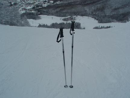 日曜日、蔵王に行ったら天気が良くて霧氷がキラキラして綺麗であんまり気持ちがいいので調子に乗りすぎたのかスキーで自分のストックを踏んづけちゃって……ストックが折れた。お昼前に折れたので午後からは、リング無しの状態で滑ってた。深く刺さって滑り辛かった…。(当たり前や! 笑)私はストックをよく折る。カーボンのストックは何本折ったことか。カーボンはエッジにぶつかるとすぐ折れちゃうしそもそも、突いた時にグニャって曲がる感触が嫌いなので丈夫なアルミに替えていた。そのアルミストックも何本も折ってる。で、片方だけ残ったストックが3本。まだまだ使えそうなのでこの中から2本を組み合わせて使おう。見た目もバランスもチグハグになっちゃうけどま、いいさ。さて、どれとどれを組み合わせようか?でも、なんでこんなにストック折るんだろ?いっつも踏んづけて折っちゃう。ドジボと同じようにストックを折っちゃう人もなんでストックなんか折れるの?ってな人もみんなクリックしてチョーダイませ。
