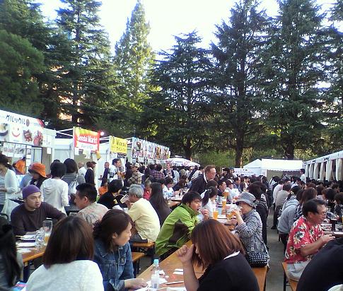 仙台オクトーバーフェスト。ドイツで200年前から行われているビールの祭典。その仙台版。陽気に誘われて、ふらふらと行ってみた。会場に向かって歩いていくと向こうからやってくる人達はみんな真っ赤な顔してる。昼間っからどんだけ飲んでんだよ。会場は、すんごい広いスペースにすんごい人出。写真に写ってるのは全体の5分の1ぐらい。どいつもこいつも昼間っから真っ赤じゃん。でも、どいつもこいつもみんな、すんごい笑顔じゃん♪ドジボも、ドイツビールやら日本の地ビールやら何だかんだと、すんごい飲んだ♪屋外だからって紙コップじゃなくてちゃんとしたグラスってのがまたいい。グラスって言っても、しっかり厚くて500ml入るデカイやつだ。乾杯するときはグラスの下のほうの厚くなってる部分をチンッと合わせると割れる心配がなくていいのだ。普段飲んでるビールと違って味が濃くて、香りがプワァ~ンと鼻を通って美味くて美味くて、すんごい飲んだ。で、周りのやつらと同じに昼間っから真っ赤になってた。もちろん、すんごい笑顔で。久しぶりに、こんな明るいうちから飲んだ。久しぶりに、こんなにビールだけガブ飲みした。で、今久しぶりに……頭がガンガンする(笑)だめだ。もう寝る…。という、おバカな飲みすぎ君に哀れみのクリックを…。