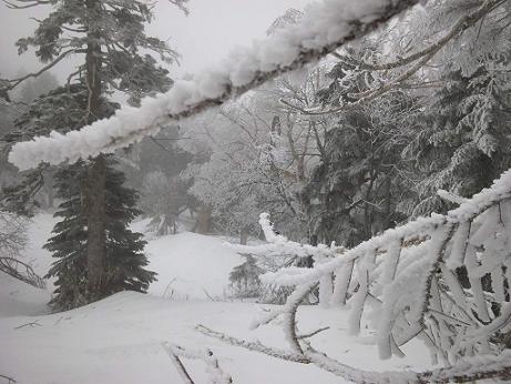 5月3日、春スキーシーズンも終盤だっつうのに蔵王は冬だった。いつもの春なら、お昼寝を楽しみに滑る林の中。昼寝…無理っしょ。てか、「寝るなー! 寝たら最後だぁー!」の世界だし…。雪降ってくるし…。あ、ここで連休後半、蔵王に来る人のためにちょいと業務連絡を。ザンゲ坂は雪が無くて滑れないそうだ。山頂からパラダイスゲレンデには下りられないのでパラダイスに行きたい人は中央ゲレンデ経由で行くように。横倉のロープウェイで山頂を目指さず中央ロープウェイに乗るように、ってことだよ。朝、その中央ロープウェイで中央ゲレンデへ。わぉ、山全体の霧氷がきれい♪…じゃなくて、これ、真冬の風景じゃん!寒々してるよ~。中央ゲレンデは滑っても詰まらないのでさっさとパラダイスに移動。写真の半分から上は線を引いたように雲が垂れ込めている。向こうに見える下界は晴れてるんだろうなぁ。なんか、不思議な風景。気温-2℃。すっかり春スキーのつもりで薄着してきたのでちょいと寒い…。みなさんも、フリースなんか要らないだろうと思っても山は何が起きるか分からないから一応バッグに詰めといたほうがいいよ。ただこの寒さのおかげで端モフが結構残ってた。もふっもふっ♪ って感触、久しぶりだった~(笑)ま、さすがにモフはもう終わりだろうからあとはザラメを楽しむことにしよう。(って、蔵王営業は残り3日、まだ行く気?)もち♪悪あがきもあと僅かだから好きにさせとくわ、って思った人もそれよりも来週の仙台ハーフのトレーニングしたら? って思った人もスキーもマラソンのトレーニングになるんじゃね? と言い訳してるドジボにクリックを。