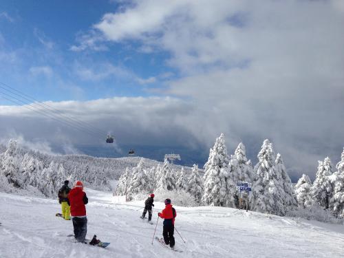 昨日の蔵王。晴れてるけど、なにやらガスが迫って来てる…。今年は出足が早いな。私自身の。昨日でもう3日目だもん。でも、ほんとは4日目のはずだったんだよね。先々週の日曜日一緒に行った友だちが蔵王の駐車場に着いてからとんでもないことを言い出した。「あ…」どしたの?「……」どしたんだよ?「ウェアの上着、忘れた…」え? じゃ、上着だけレンタルか?「シーズン券、入れたまま…」……。今日だけ一日券買って滑る…わけ…ない…よね…。「わけ…ない…です…」ということで、駐車場からそのままみんなで帰ったのだ。ま、前日も滑ったし滑れるのは上の方のゲレンデだけだし山を見上げるとガスに覆われてるしガツガツしなくてもいいかってことで。友だちは落ち込んでたけどだいぼむ、だいぼむ、気にするな。私だって、ブーツを忘れてそのまま帰ったこともあったし。2泊3日の岩手遠征のときに同じようにウェアを忘れて3日間レンタルして滑ったこともあったし。あとからの笑い話になるから(笑)ただ、今日の昼めし…あんたのおごりね!さて、昨日の日曜は晴れたりガスったりの天気。しっかし、スキーヤーってのは晴れればテンションあげあげでこんなに楽しいものはない♪って思うのにガスが出てきてホワイトアウトするととたんにテンション下がってやる気なくなっちゃうんだよね。だから昨日はリフト1本滑るごとにテンション上がったり~下がったり~を繰り返してた(笑)いい加減なもんだね。あはは。…って、そんなの私だけ?はてさて、今週末のテンションはどっち?!ガスでもアゲアゲでいくわよ!って人も吹雪だってアゲアゲよ!って人も根性なしのドジボにクリックしてチョーダイませ。