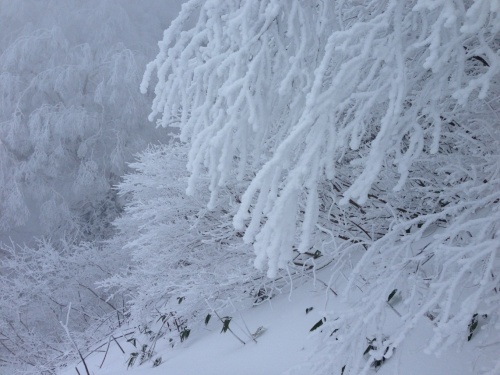 ガスの中を行進するゾンビでガス。早く樹氷になりた~い。先々週、初滑りのときは中央ゲレンデだけのオープンだった。短いし退屈なコースなので何して遊ぼうかと考えるのが大変だった(笑)でも、おとといの土曜日はパラダイスゲレンデもオープンしたので結構楽しめた。何が楽しめたかっていうとパラダイス全面……圧雪なしだったのだ!朝早く行ったわけでもないのにトラックが数本だけ。もち、すぐさま突っ込んで行った。でも、重い~~~っ。それでも、ふわんふわん浮き沈みはするのでやっぱ楽し~~~っ♪あ、新雪滑るときってターンする意識を持たないのがコツなんだよ。(え…?)真っ直ぐ滑ってしゃがんで~、伸びて~を繰り返せばいい。で、伸びるときにストックをつけば勝手に曲がる(笑)本人は真っ直ぐ滑ってる意識でも傍から見るとちゃ~んと曲がってるから。さて、重い新雪をしばらく楽しんでるとだんだん滑りにくくなってきた。切り刻まれた重い雪がごわごわ、でこぼこになるしボーダーの木の葉滑りの跡が洗濯板のようになってるしついでに、登山の団体のツボ足跡があるしで(笑)滑りにくいことこの上ない。こんなとこ滑る時の意識は新雪とは全然違う。新雪では「うひょ~♪ うひょ~♪」って声を出しながらイルカが水面に沈んだり飛び出したりするように滑るけどごわごわ雪では「こんにゃろ! こんにゃろ!」って気合を込めて雪を蹴散らして滑る。あ、これ、イメージだからほんとに「こんにゃろ! こんにゃろ!」って声に出さないでね。実際にやってみたら字数が多くてタイミングが間延びしちゃった。「にゃろ! にゃろ!」ぐらいの短い掛け声で一気に蹴散らすのがいいみたい。(実際にやったんかい…)私の場合、基本的に新雪と、ごわごわ雪と、整地の3パターンで滑り方を変えている。新雪滑ってて、途中からごわごわ雪になったら「あ、ここから滑り方変えよう」って意識して切り替えるのだ。決して、どんな雪でも同じ滑り方をしようなんて思わない。私、たまに言われることがある。「ドジボさんって、どこ滑っても同じ滑りですね~」って。違うんだよ。もし、そう見えるとしたらそれは、状況によって滑り方を変えてるからなんだよ。今シーズンもいろんな雪をいろんな斜面をいろんな滑り方でたくさん楽しもうね!どこでも1パターンで滑れるもん、っていう直球勝負の人も7パターンぐらい持ってるよ、っていう七色の変化球の人もそれぞれの楽しみ方で滑ろうね、ってことでクリックしてチョーダイませ。