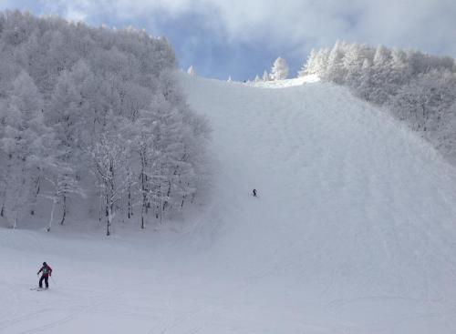 蔵王、横倉の壁。38度だって。特に何を教えたワケでもないのに師匠と呼ばれることがある。ゴルフでもスキーでも。人生においては誰も呼んでくれないが…。ま、まあ、それはよい。スキーでは二人の女子に師匠と呼ばれてる。もとい…二人の「かわいい」女子に師匠と呼ばれてる。二人ともこのブログ見てるから、一応。(一応って言うな!)二人ともドジボに初めて横倉の壁に連れて行かれたのだ。「ワンターンで止まるつもりで~」ってレベルのときに(笑)それ以来、彼女たちに言い続けたのは上体を下に向け続けて~! ってことぐらい。今では二人ともすっかり巣立ち立派なヒトリストとして壁を楽しんでるようだ。先シーズン、一番弟子でブログ仲間のはる☆さんと壁でバッタリ会うし。「あら、はる☆さん、こんなとこで会うなんて」「いえ、ドジボさんと会うとしたらここでしょう笑」弟子に行動パターンすっかり読まれてる…。二番弟子も巣立ち先日、初ヒトリストをしたそうだ。で、壁を2時間滑り続けたらしい…。すっかり壁好きになった二人鉄女、歴女ならぬ、壁女だ。女はこうやって男を踏み台にして……じゃなくて弟子はこうやって師匠を踏み越えて行くものなんだな。師匠冥利に尽きるってもんだ。でも二人とも…たまには誘ってね♪弟子が立派になって嬉しいわね、って思った人も師匠、寂しそうね、って思った人もクリックしてチョーダイませ。
