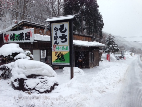 スキーならどんな所でも、どんな状況でも、どんなスピードでも止まろうと思えば止まれる。でも、車で雪道の下り坂を走ってるときは止まろうと思ってもすぐ止まれる自信はない。タイヤがどんだけグリップしてくれるかどんだけで滑り出すかまったく予想がつかないのだ。だから下り坂ではスピードを出さない。ぎりぎり出せるスピードの60%ぐらいで走ってる感覚だ。ず~っと以前、そう20年以上も前のこと。オニコウベスキー場からの帰り下りの直線で無造作にブレーキを踏んだら横滑りして車が横転したことがある。握りしめたハンドルの向きとは関係なく車が壁に向かって滑っていく感触が今でも残っている。だから、雪道の下り坂では…チョーびびるのだ(笑)高速道路で蔵王に来る人は気を付けてほしいんだけど宮城県との県境の笹谷(ささや)トンネルを抜けるとすぐ長~い長~い下り坂になる。山形蔵王ICまでず~っと続く下り坂。しかも結構急で、クネクネのカーブだらけだ。私、そんな雪道をスピード出して走れないのでトンネルを抜けてすぐのインターで降りる。ま、下道は下道で高速道路より急な箇所もあるんだけどゆっくりゆっくり、トロトロと走れるから気が楽なのだ。で、ここから本題。(えっ…)高速道路にビビッて下道に降りるとまもなく「峠の茶屋」って看板が見えてくる。ず~っと昔からある店でず~っと気にはなってたんだけどず~っと行く機会がなかったのだ。外観、ただの小屋だし…。ありふれた名前で興味そそられないし…。でも、こないだ蔵王から午前中で降りて来たときに昼ごはんに寄ってみた。蔵王が寒くて寒くて耐えられなくなって降りてきたのだ(笑)さてと、看板に「もち ラーメン」って書いてあるのでラーメンと餅のセットを注文してみよう。餅は、あんこ、ごま、くるみ、きなこ、ずんだ、おろし、納豆の中から1種類を選ぶ。「おろし餅」セットにしてみた。950円。ひひひ。私の勘に狂いはなかった。ビンゴ!おろしに醤油をかけて餅にたっぷり乗せて食べると、うみゃい!ラーメンは普通に旨い。思いがけず秀逸だったのはメンマ。太くて食べ応えがあってもしかして…今までで一番旨いメンマかも。食後にコーヒーも付く。古民家…ってか、掘っ立て小屋みたいな店でおばあちゃんと、おばちゃんでやってるのにこのプレート、しゃれてるじゃん(笑)帰りには、きな粉餅のお土産までもらって ←お正月だからか?なんか得した気分。寄り道のパターンがまた増えたぞ♪スキー早上がりするなんて、よっぽど寒かったのね、と思った人もいくら寒いからって、早上がりするなんて年なんじゃね? と思いやがった人もクリックしてチョーダイませ。