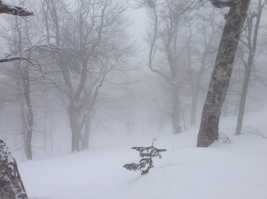 冬山はガスが多いでガス。先シーズンの写真。私はごく普通のレジャースキーヤーだけどゲレンデよりも林の中を滑ってる時間のほうが圧倒的に多い。ポゼッション率でいうと林79%、ゲレンデ21%ってとこか。(↑ にわかサッカーファンが、サッカー用語を使いたがって…)(使い方、変だし…)で、林の中の良いところ。深雪がある。雪が風に飛ばされないでふかふかのまま残ってるのだ。あと、ゲレンデは吹雪で顔面凍りつくようなときでも林の中は穏やかだ。風もない。ガスでゲレンデがホワイトアウトしちゃうとどっちが右だか左だか上だか下だか分からなくなって雪面を滑ってるんだか宙に浮いてるんだかも分からなくなって吐きそうになっちゃう。そんなときでも林の中なら木々が対象物になり平衡感覚が戻って普通に滑れる。春スキーでゲレンデにシート敷いていきなりランチ食べだしたら邪魔でショーガナイけど林の中ならのんびり食べれるし昼寝までできる。なんと言っても木の間をすり抜けながら滑ってると野生の感性が呼び覚まされる。木にぶつからないように滑るだけじゃなくどのルートだとスピードを落とさずに行けるかどこの雪溜まりが一番気持ち良さそうかなんてことを一瞬のうちに判断するのだ。レジャーランドのように安全が保証されたスリルではなくリアルなアドベンチャーだ。…って、それほど大袈裟じゃないけど(笑)衰え始めた動体視力や反射神経を鍛えるのにも持ってこいだ。さ、均された斜面ばっかり滑ってないで林に入って野生を呼び起こすのだ。うおぉぉ~~~ん!!狼のように駆けてゆく私!(いや、ドジボはせいぜい送り狼でしょ…)ってことで、林のすすめなのだ。でも、いくらゲレンデ脇の立ち入り禁止じゃない林だとしても木にぶつかる危険性はある。また、雪の中に下枝が隠れていたりギャップの陰に穴が開いていたり意外と危険はある。やっぱ危ないので林は勧めないことにしよう。みんな入って来ないでね。(林を荒らされたくないだけでしょ…)ぶひ(笑)送り狼な貴方もそんな狼に送ってもらいたい貴女もクリックしてチョーダイませ。→にほんブログ村→