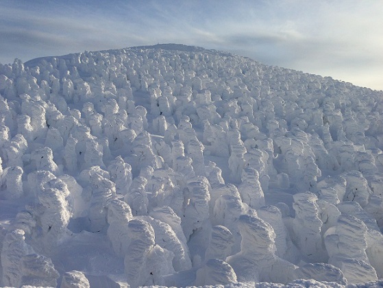 こんなに晴れたら超ラッキー。先シーズンの蔵王。『ドジボと滑る、蔵王あんなとこツアー』開催。いや、そんなのないけど。でも、やろうかと。火山活動活発化のニュースが流れ今シーズンの客数が減るかもしれない蔵王…。一人でも多くの人に来て欲しいってことでドジボが蔵王を案内するガイドツアーだ。料金は、なんと無料!ま、分かりやすく言うと「一緒に蔵王で滑ろうよ♪」っていう単なるお誘いなのだ(笑)面白いとこ案内するからおいでよ! ってノリ。だから内容はドジボのお気に入りのルートを滑るってもの。(おい…)ちょい脇の林とか、ゲレンデの端っことか。ただゲレンデ滑るだけじゃ詰まらないでしょ。かと言って、裏山を登ったりのバックカントリーじゃない。ドジボ本人が歩くの嫌いだから(笑)歩かず登らず、しかも危険のない蔵王のあんなとこや、こんなとこを滑ろうって魂胆だ。普段、きれいな滑りやカッコイイ滑りを目指して整地を滑ってる人にもお勧め。たまには教程だの理論だの置いといてもふもふ雪の気持ち良さやごわごわ、ぐざぐざ雪でバランス崩して「うひゃ~!」ってなる楽しさを味わってみるのも良いんじゃない?(笑)転んで「ちっ」と言うスキーじゃなくて転んで大笑いするスキーだ。蔵王に何日か滞在するなら一日ぐらいはそんなとこ滑ってもいいと思うぞ~♪で、開催は、ほぼ毎週土日。(ほぼって何よ)ドジボが蔵王に行くときに開催ってこと。ほぼ毎週行ってるから「ほぼ」。現地集合、現地解散。(現地ってどこ?)それはみんなの泊まってる場所や当日の天気によって決める。あ、新雪の降った翌日は集合時間が早くなると思われ。また、朝から新雪滑ってるから朝食取ったらここまで来てチョーダイ…ってなこともあるかも(笑)(自分勝手だな…)晴れたら、何はともあれ樹氷を見に山頂を目指す。ロープウェイを2本繋いで行くんだけど晴れた日は当然混雑する。特に1本目のロープウェイは朝から激混みなのでリフトを乗り継いで中間駅まで行っちゃう。中間駅に10時前に着ければまだ山頂線はそんなに混んでない。また逆に、午後3時以降ならほぼ待ち時間なしで山頂線に乗れるから夕焼けを浴びた樹氷を見るって手もある。ただ、蔵王の場合午前中晴れてるからって安心してると午後からガスに覆われたりとか急に吹雪になったりとかが当たり前にあるので晴れたと思ったらまずは山頂に上りたいのだ。晴れた日の樹氷だけは絶対、じぇ~~~ったい見逃してはいけない。ドジボの、あんなとこツアー。こんなふうに、滑るルートだけじゃなく迷路のようなリフトの効率いい移動方法とか吹雪でも滑れるゲレンデとか写真撮るならここってポイントとかいろいろ案内できる。ってなわけで蔵王に来る予定ができたらぜひメッセージチョーダイませ~。てか、ドジボと一緒に滑らなくてもいいからぜひぜひ蔵王に来てくり~!ドジボさんって蔵王の親善大使?って思った人も結局は、滑る友だちがいなくて寂しいからだりか一緒に滑っちくり~…ってことでしょ、と分かってる人もクリックしてチョーダイませ。→にほんブログ村→
