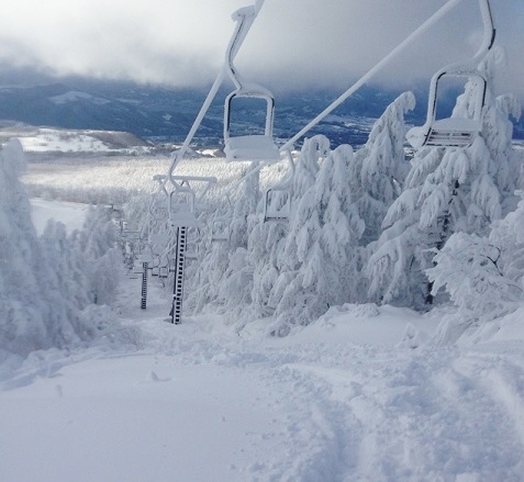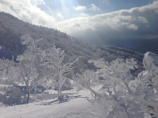 少々の吹雪でも林の中に入っちゃえば穏やかだしゲレンデがガスでホワイトアウトしてても林の中だと木々が目印になって問題なく滑れる。でも、でもさ…やっぱ晴れてるほうがテンション上がるよね。間違いなく笑顔5割増しになってる。昨日の蔵王は前日からの雪でどこもかしこも新雪たっぷり。でも朝からガスと風。コース脇や林の新雪を滑ってそれなりには楽しんでたけどテンションもそれなり。ほぼ朝一から滑ってたので、早めの昼ごはん。食べ終えて一息ついてたらなんと急に日が差してきた。慌てて飛び出したさ(笑)午後のほんの2時間だけしかも私の滑るエリアだけ雲が抜けたのだ。どうよ? ここ。テンション最高潮!バフバフの深雪に包まれてしあわせだったのだ♪林の中は、正直あと50センチから1メートルぐらい積もって低木をすっかり埋めてほしいけどそれでも、ま、十分楽しめるぐらいにはなっていた。ど~れ、いよいよ本気モードになってきたど!いよいよスキーモードになってきた人もとっくに本気な人もクリックしてチョーダイませ。にほんブログ村