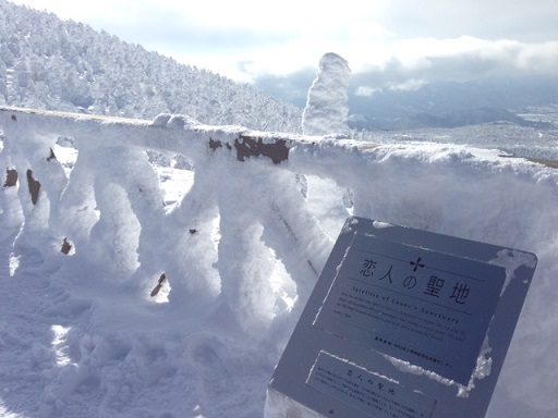 蔵王ロープウェイの山頂駅。階段を登って屋上に出ると展望台になってる。そこから樹氷原を見たらま、100人中100人が感嘆の声を上げるだろう。いや、96人ぐらいかな…。蔵王に行って運良く晴れたら必ず登ってみてね。先週、今シーズン初めて屋上に行ってみた。だって、今シーズン11回目にして初めて晴れたんですもの…。すると、見慣れないものが設置されてある。恋人の聖地…って書いてある。はい?え~と、え~と、これ…なに?気になってしまったので調べてみた。え~と、NPOの地域活性化支援センターってとこがやってる恋人の聖地プロジェクトらしい。で、なに?プロポーズにふさわしいロマンチックなスポットを恋人の聖地として認定してるそうだ。ほほう。で、認定してどーするの?地域の観光を盛り上げようってことらしい。なるほど。恋人達を呼び込もうってことか。あと…あと…、少子化対策だって…。はい?少子化の一因は未婚非婚にあるから恋人の聖地でプロポーズして多くの人に結婚してほしいんだって。その結果、子どもが増えればいいってことらしい。その理屈…ちょっと無理があるんじゃね?(笑)ま、少子化対策のことは置いといて。確かに蔵王の樹氷原を前にしてプロポーズしたら成功する確率は高くなるだろう。夜のロープウェイで行く樹氷ライトアップもそーとー綺麗みたいだし。話のタネに行ってみようかという人が増えるかもしれない。恋人の聖地。蔵王の他にはどこがあるんだろ。え~と、現在全国に138ヶ所…って、そんなにあるんだ?!なんか乱立してるようで有り難味がないな~(笑)宮城県にも何ヶ所かあるぞ。楽天イーグルスの本拠地koboスタも認定されてる…って、全然ロマンチックじゃないじゃん!これなら蔵王の方が100倍良いわ!ということで、恋人のみなさんまたは、恋人にしたい相手がいるみなさんいいことあるかもしれないから一緒に蔵王に来てみたら~♪恋人連れて行く!って思った人も恋人いないけど樹氷見たい!って思った人も恋人欲しいからお参りに行く!って、神社と勘違いしてる人もクリックしてチョーダイませ。にほんブログ村人気ブログランキングへ