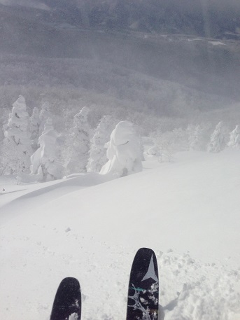記事とは関係ない納涼写真。冬の蔵王。急斜面を上手に滑りたい、って思う人この指とまれ~。ほ~い。急斜面を上手に滑るための一番の練習は急斜面を何度も何度も繰り返し滑ること。蔵王で言えば横倉の壁。スクールやスキークラブなのか団体で横倉の壁を滑る人たちを時々見かけるけどほとんどが1回きりでどっかに行っちゃう。もっと滑ったらいいのに、っていつも思う。私なんか壁に2時間も3時間も貼り付いてるのに。あ、私の場合、練習じゃなくて遊んでるだけなんだけどね(笑)横倉の壁って上からも下からも見通しが良いしコース幅もあるから急斜面練習にはもってこいだと思う。ところで急斜面を滑るときに一番大事なのは何?それは、気合だ(笑)いやマジで。勇気や根性と言ってもいい。急斜面でビビると体が固まっちゃって出来ることも出来なくなっちゃうから。勇気を出して恐怖心を抑えるには急斜面に慣れるのが一番。何度も滑ってるとだんだん斜度が緩やかに見えてくる。これほんと。あと、格好はどうでも何度も滑ってるという自信。そうなってやっと根性と勇気を出せるようになる。あんまり急斜面を滑ったことない人は上手に滑ろうとする前に慣れることが大事。初めのうちビビッちゃうのは仕方ない。慣れてきて根性出せるようになって初めて自分の技術を発揮できるのだ。そしてその根性はワープさせることができる。初めて立つ急斜面でもいつも滑ってる斜面と同じぐらいだと思えれば余裕が出るってもんだ。実際、いつも横倉の壁を繰り返し滑ってる弟子を別な急斜面に連れて行ったことがある。「ドジボさん、ここチョー急じゃない?」「いや、横壁と同じだよ。同じ同じ。気合入れて行けば楽勝!」って感じで、弟子も問題なく滑って来れた。斜面を見上げながら満足そうに言ってたよ。「ドジボさん、不思議なもんでやっぱり横壁より急に感じますね~」「あっそ。だってほんとは急だもん♪」「え……」ほら、急斜面は気持ちが大事ってことが分かったでしょ(笑)「だましやがったな!ドジボ!」こ、こら、師匠を呼び捨てにするな!し、師匠の首しめるな~~!ドジボと一緒に滑ると、こんな楽しい目に遭えるよ♪ということで今日の記事は急斜面をたくさん滑ることの意義。その精神編ってとこかな。急斜面に遭遇するとビビッちゃう人も急斜面を目の前にするとヨダレ垂れちゃう人もクリックしてチョーダイませ。にほんブログ村スキー ブログランキングへ