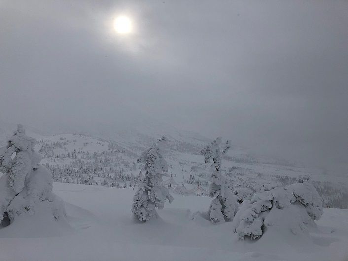 八甲田スキー場ってどんなとこ?マップを見てみる。ロープウェイで上がると2つのコースがある。マップではちゃんとしたコースのようになってるけど圧雪されてるわけでなく目印のポールが立ててあるだけらしい。なんてこった。ワクワクするぜぃ。笑そのコースとは別に駐車場の右隣に普通のスキー場がある。八甲田国際スキー場というらしい。こんな山奥で、こんなちっちゃいのに国際?笑っちゃうぜ。でも、周りを見るとやたら外国人が多い。半分くらいは外国人なんじゃないか?確かに、そこらのスキー場よりずっと国際的だ…。まずはチケットを買おう。ロープウェイは9時始発。今は8時半ちょい前。8時半からチケット窓口が開くようだけどもうすでに乗り場にはたくさんの人が並んでる。みんな前もってチケットを持ってるようだ。窓口が開くと同時にチケット購入。BCへ行く人は1回券1250円を買っていた。私たちはロープウェイを繰り返すつもりなので6回券を買う。6100円。なんと、ハサミを入れるタイプだ。懐かしいなぁ。昔はどこもこれだったなぁ。乗り場への階段に並ぶ。乗り場まで3つの踊り場があるんだけど一番下の踊り場あたりに並んだ。その後、みるみる列が伸びていく。周りはBCの装備をしてる人が多い。多いっていうか、ほとんどがそうだ。スノーシューをリュックに付けてたりと。で、その半数が外国人。↑これらの割合はドジボが感じたイメージね。ここはやっぱりBCがメインの場所なんだな。したいとは思わないけどこれだけの人がやるBCにちょっと興味が湧いた。100人乗りのロープウェイ。始発には乗れなかった。改札口の前。電光掲示板なんかあって、意外と近代的。15分後、第2便の改札が始まった。これには乗りたい。係員がカウントダウンする。「あと20人で~す! あと10人で~す!」うわ、間に合うか。「残り5人で~す!」ってとこで、なんとか滑り込めた。ふぅ。10分で山頂駅に到着。1本目はダイレクトコースへ。おお、写真でよく見る風景が広がっている!晴れてればもっと良かったのに~。でも視界があるだけいいと思わねば。いつも吹雪いてる地帯らしいから。コースは未圧雪。オレンジのポールと番号標識でコースを示している。え~と、こっちかな。さぁ滑り出そう。あれ? 新雪が薄い…。しかも重い…。新雪は、たったの5cmらしい。予報からすると、あと20cmは積もってるはずだったのに~!下界は雨だったから重いのも当たり前だし。八甲田史上、最重の雪質だそうだ…。ちなみに夏油のHP見たら新雪25cmと書いてある。なんだそりゃ…。あんなに予報を吟味して来たのに。もうウェザーニュースは信じないぞ!「ドジボさん、それ10回は聞いてますよ…」うむ。だってウェザーニュースって降雪予報がいつも多めだからついつい嬉しくなって希望も加味されて信じちゃうんだよねぇ。ダイレクトコースは3.5km。なかなか面白い斜面なんだけどいかんせん新雪が浅い。そして、迷っちゃいけないと目印のポールを探しながら滑るのでどうしてもちょいちょい止まってしまう。この細いポール、ガスっていたら見落としそう。ここが深雪でルートも頭に入れて思うままにスピード出して滑れたら楽しいだろうな~。そう思わせるコースだった。それにしても周りに人がいない。すれ違ったのは数人だけ。あんなにロープウェイに人が乗ってたのに。ほとんどBCへ行ってしまったのだろうか。それほどまでに人を引き寄せるBC気になってきた…。ま、気になっただけね。やる気にはなってない。笑ロープウェイ2本目。さっきより並んでる…。3便待ちだった。2便目は目の前で締め切られた。オーマイガー!私のすぐ後ろにいた外国人たちもOh!と嘆きながら笑ってた。これもまた楽しや♪ということで今回はここまで。次回、『バイバイ、八甲田』編に続く。自分でも思うけど、文章長過ぎ。いつまで続くのやら…。最後まで読んでくれた人も途中で寝ちゃった人もクリックしてチョーダイませ。にほんブログ村スキーランキング
