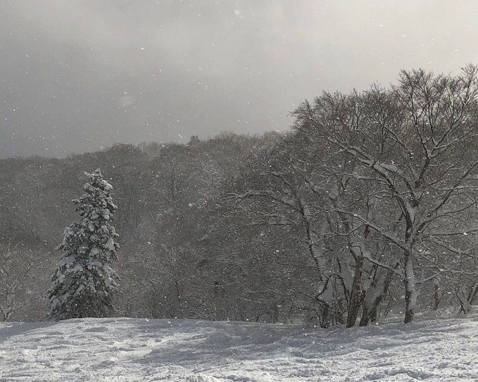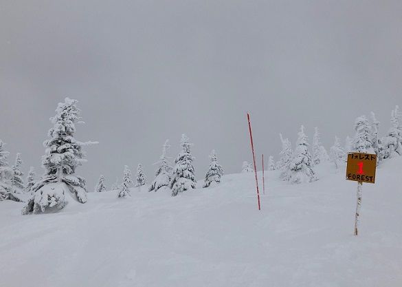 八甲田の2本目はフォレストコース。マップを見ると全長5kmと書いてある。なかなか長いようだ。なになに、最初の1kmは斜度があり4kmは森の中の緩斜面を滑る、だって。緩斜面の部分が長いな。逆だったら良かったのに。ここから出発だ。1番の看板があってあとはポールがザクッと刺してあるだけ。このアバウトさが魅力だな。笑滑り出すとこっちのコースの方が斜度があって面白い。雪も幾分深いような気がする。気のせいだろうか。…深くあってほしいという願望がそう思わせるのか?笑ただ、やはりポールを探しながら時々止まりながらの滑走になる。ここを一気に滑ったら気持ち良さそう。もちろんフワフワ深雪のときにね。お、下の沢に人がいる。フォレストコースでの第一村人発見。笑ここを降りて、あの沢を越えると森の中の緩斜面に入るようだ。楽しい斜面を滑り終え森の緩斜面に入った。ほんとに森だ。フォレストだ。なんとなく道は出来ている。タラタラ滑ってるだけではツマラナイので脇の林に入ってみるけど雪が浅いし重いし、緩斜面だしでやっぱりツマラナイ。まぁ幻想的で雰囲気はいいので散策気分で森を楽しむって感じかな。♪ある日~ 森の中~ 熊さんに~…いや、出会いたくない。熊さん冬眠しててね。のんび~り滑る。熊さんにも出会わなきゃ人にも出会わない。たらたら~っと滑る。ちょっと飽きてくる。そう言えばこの緩斜面、4kmだっけ。長い…。晴れた日は木に乗った雪がキラキラして綺麗なんだろうなぁ。今日だって十分綺麗だもんな~。あ~、た・の・し・い・な~。と、自分を盛り上げながら滑る…。しばらく滑ると、なんと道路に出た。ど、どーろ?ルート間違えた?いや、正しいようだ。幻想の世界からいきなり世俗に戻された気分だ。この道路脇を滑る。てか、歩く。そしてカニ登りする。そうするともうゴールが見えてくる。なるほど、2本のコースはこんな感じか。次もフォレストコースを滑ることにした。でも、さっきとはちょっと違う。ロープウェイを降りてフォレストコースに向かう手前から板を担いで登ってる人が何人もいる。BCへ行く人たちではない。そんな装備を持ってない人たちだ。親子連れのボーダーもいる。親が、小学生の子供に話しかけてた。「ちょっと登ろう。こっちの方が広いから」なになに。聞き捨てならないぞ。私たちも登ってみた。登ると言ってもちょっとだけ、2~3分。すると、あの親の言うとおり開けた斜面が広がっていた。なんと開放的な素敵な斜面なのだ。何本もシュプールが付いている。ここを行くとさっきのコースにぶつかるのだな。こんなルートもあったのか。てか、ルートも何もこの山はどこを滑ってもいいのだ。安全のためにポールを立てて一応コース設定はしているって程度なのだな。向こうの山の斜面を見るとあちらこちらに人影が見える。BCの人たちか。コースの辺りだけでもこんなに楽しそうな斜面があるのにハイクアップして自由に滑れたらどんなに楽しいのだろう。少し心が揺れた。スキーヤーたる者一度はBCをやってみるべきではないのか。BCを知らずにスキー人生を終わらせてもいいのか。やるならここがいいな。ガイドツアーもたくさんあるようだし。装備のレンタルも揃ってるし。でもやっぱり歩くのは嫌だなぁ。100kmマラソン完走したら、BCもやってみようかなぁ。(ドジボさん、100km走る方が大変でしょ…)いや、私にとっては100kmの方が簡単に思える。走るのはいいけど、登るのは辛そう。(意味わかんね…)てか、何でBCについてこんなに語ってるんだろ。落ち着け私。とりあえず今はこの斜面を滑っていこう。広いエリアだからノートラックの箇所も多く残ってる。まぁ浅かろうが重かろうがオフピステってだけでチョー楽しい。ひゃっほー!!しばらく滑っていくと沢に出る。沢筋を行くとさっきのルートに合流して森の中の緩斜面へと入る。そうか、楽しいのはここまでか。また長い緩斜面が続くのであった。そしてまた道路脇を通ってカニ登りをして3本目が終了したのだった。もうお昼もとうに過ぎている。お昼ごはんはどうしよう。てか、滑るのどうする?この浅くて重い雪をまた滑る?あんまり楽しくない雪を無理して滑ってもショーガナイ。ふたつのコースはだいたい把握できた。今度、深雪を狙って来たときたとえ雪降りで視界が悪くても止まらずに滑れるだろう。それだけでも今回来た甲斐があったってもんだ。今日はもう十分じゃないか。残ったチケットは無期限で何年でも使えるみたいだし。よし、潔く終了しよう。お昼ごはんは青森市まで下りて食べよう。実は、いいとこ知ってるんだよ♪ということで心はすでにお昼ごはんに向いてしまった私たち。さっさと着替えてとっとと八甲田を後にしたのだった。バイバイ、八甲田。必ずまた来るからね。チケット残ってるから。笑次回『なぜか青森で遊ぶ』編へ続く。(まだ続くんかい!)うん。東北ツアー、まだ初日だもの。(まじか。もう飽きた…)うん。じゃあ、