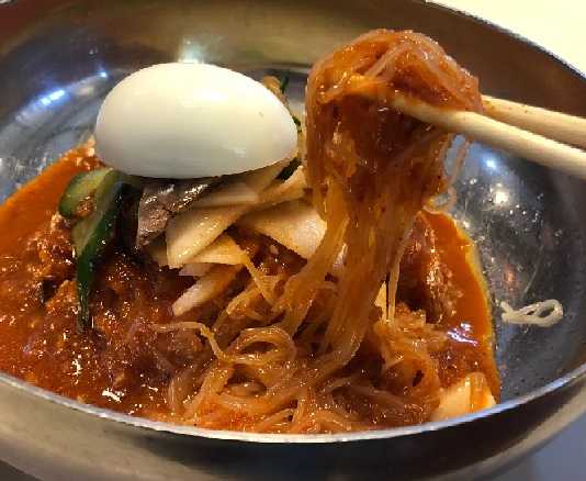 から~いビビン冷麺を食べた。