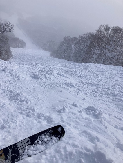 泊りがけで岩手遠征に行って来た。以前は雪の一番多い2月に遠征してたんだけどここ数年、2月にはもう南岸低気圧のベタ雪の降ることが多くて粉雪を狙うなら1月に限る!ってなっちゃった。ってことで、私の毎シーズンの最大イベント2泊3日岩手遠征も1月になった。今回は、うまい具合に寒波が来て今シーズンベストの新雪、深雪に当たったのだ。初日は岩手県ローカルの下倉スキー場。深雪を狙う私にとってコース雪質ともに一番のお気に入りだ。メジャーな安比の陰に隠れてそれほど有名でもなく深雪争いの競争率も低い。しかも今回は平日。さらに競争率が下がって深雪ブッハブハ、気分ウッハウハの予定~♪……が、リフト始業前から長蛇の列。いつもの下倉じゃない。ローカルのボーダーも「こんなの下倉じゃないみたい」と驚いていた。この並んでる連中はどこから湧き出てきたのだ?まぁ、私も仙台から湧き出た一人なのだが。とは言え、やっぱりそこはローカルスキー場並んでいるとは言え絶対数は少なく広いツリーエリアに分散したりして競争率は低い。結果としては、一日通してフワフワ深雪を十分楽しめた。まず狙うは一番上のダイヤモンドコース。非圧雪37度の急斜面だ。写真は何度も滑った後のね。リフトを降りて、いつものようにウォーミングアップ無しで斜面に突っ込む。滑るというより落ちる感覚。胸まで沈み込む~。雪が軽いからグングン突き進んで行く。あ~至福の瞬間♪段落まで滑り、急斜面は終わる。でもここからもまた楽しい。非圧雪の中斜面が続くのだ。ここを出来るだけのスピードを出して浮き沈みしながら滑って行く。これもまた気持ちいい~。この、急斜面と中斜面を合わせて長~~く深雪を滑れるとこが魅力。午前中たっぷり楽しんでお昼ご飯へ。で、ゲレ食に入って周りを見て驚いた。外国人ばっかりじゃん。しかもアジア系じゃなくて、欧米系。8割がた外国人じゃないの。私の感覚として。じゃ、朝一のリフトの列は、ほぼ外国人だったのか。てか、わざわざ海外から来てなんでこんなローカルスキー場に。日本でさえそんなに知られてないのにいったい何情報を見て来るんだろう。隣の安比の方が有名だよ。安比の方が広くて楽しいと思うよ。安比に……行けよ!あ、失礼、つい。笑外国人たちも一緒に楽しく滑りましょうね。その外国人たちでギタギタにされてるであろうツリーエリアには午前中は入らなかったんだけど午後から状況チェックのため入ってみた。(何のチェックだ。笑)まだまだこんなに深い雪が残っていた。さすが下倉。ということで、丸一日、深雪をたっぷり堪能しましたとさ。今シーズンのベストデイで遠征1日目は終了!外国人が多くいたっていいじゃん、って思う人も外国人って整地に見向きもしないで深雪滑るから競争率ムダに上がるんだよなぁ、って思う人もクリックしてちょーだいませ。にほんブログ村