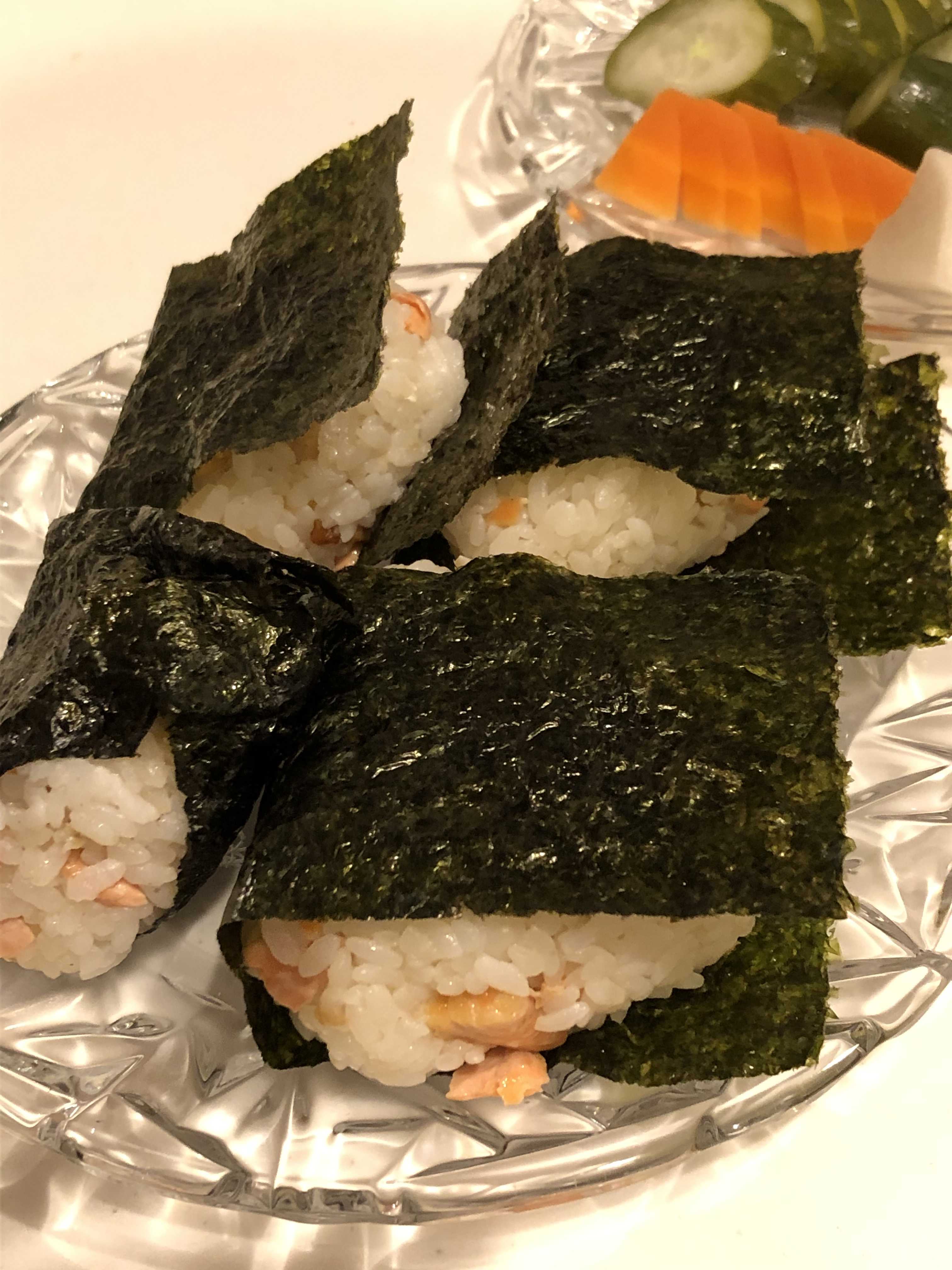 メインは紅鮭ハラミ焼いて混ぜ込んだおむすび🍙