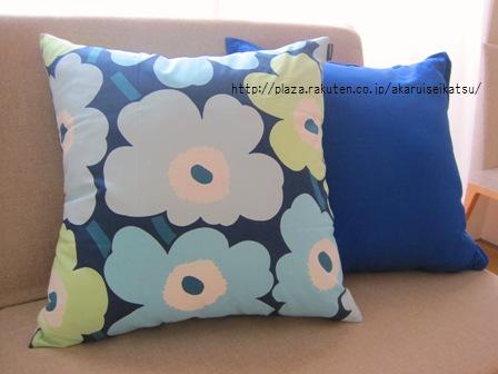 クッションカバーを替えました。(以前まではこれでした→★)夏といえばブルーということで、マリメッコの生地の中でブルー系を探していて、春頃にマリメッコのshopでこれだ!と思ったものを先日のマラソンで購入。いったい何ヵ月かかって購入に至っているのだか。。。自分の行動の遅さに嫌気がさします。。。 marimekko/マリメッコ大好き!! iittala * ARABIA * marimekko 北欧ラブ♪ アイスブルー♪ ヌードクッションはこちら かなり悩んで決めた柄なので愛着がわきますユルモと悩みました IKEAの499円のブルーのクッションカバーとよく合いますしかし、このIKEAのカバー、洗うと色落ちするんですよね。。。安かったし仕方ないのかな。。。 そして先日、絵本棚の位置を変更したので(→★)ソファーを和室に戻しました。 お部屋を模様替え 絵本棚の裏です。そして窓側に寄せています。したがって誰も座りません。もともとソファーでくつろぐ事は少なかったのですが、皆無になりました(笑)娘が暴れて乗るくらい。あ、畳んだ洗濯物の一時置きの場所として役立っていました キッチンから見えるこの景色に癒されています ブログランキングに参加しています。ご訪問ありがとうございました。