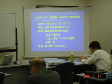 百五銀行刈谷支店の支店長と支店長代理が、事務所にお見えになりました。来週行われる百五銀行主催のセミナーの打ち合わせです。※※※※※百五銀行刈谷支店 お客様感謝企画法律・税金が一度にわかる!!『相続・贈与対策セミナー』日時:平成20年11月11日(火) 13:30~16:45会場:刈谷市産業振興センター3階 305会議室法律がわかる!第1部 13:30~15:00「知れば得する!相続・遺言の基礎知識」講師:司法書士法人ファミリア 代表社員 金子英之 氏税金がわかる!第2部 15:15~16:45「わかりやすい相続税・贈与税と相続対策」講師:加藤厚税理士事務所 所長 加藤厚 氏ご予約・お問い合わせ先百五銀行刈谷支店 電話0566-21-0105 担当 長田・平井※※※※※ 百五銀行主催のセミナー講師は、過去に伊勢支店、鈴鹿支店で講師をさせていただいた。今回は、刈谷支店がこの4月に開設された。三重県に本店を置く百五銀行さんとしては、トヨタ自動車のお膝元、愛知県の三河地区には初出店だそうです。そこで、支店独自では初のセミナー開催の企画に、講師に呼んでいただきました。時間の許す限り、ありったけの最新の情報と経験をお伝えできればと思っております。先月の、名古屋商工会議所さん、熱田法人会さんに続く講演です。このようにして、お客さまから講師をしてご指名を頂けることに、とても感謝しております。ありがとうございます※※※※※わかりやすい相続税・贈与税と相続対策〔最新改訂版〕加藤厚税理士事務所公式HP