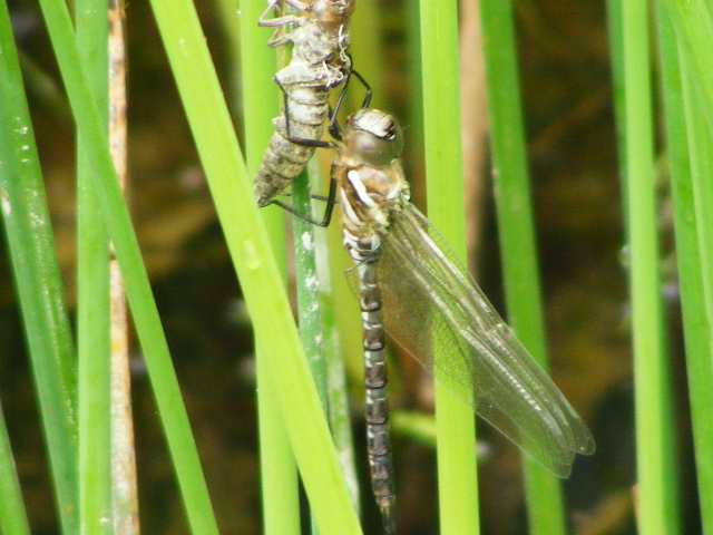公園はトンボのう化がはじまってました。 特に水辺でフトイにつかまったオオルリボシヤンマのう化は、なかなか見られませんよね。 多分雌なんでしょうね(^_^)色があまり青くないですから。