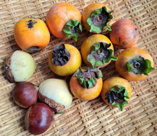 庭に実った柿と栗を少しだけ収穫秋は少しずつ近づいているはずですが、日中はまだまだ暑いです