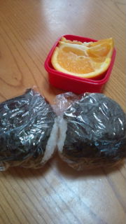 リクエストのツナマヨとタラコおにぎりにデザート。お汁はナント!小さいお椀ラーメンだったと!