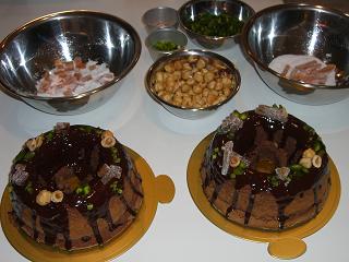もうすぐバレンタインですね。チョコレートを自分用に吟味して試食するのが楽しみ!定番のショコラクラシックに、ヘーゼルナッツとオレンジピールを生地に合わせました。チョコレートのグラサージュに、トッピングをすると豪華に仕上がるのでプレゼント向き。食べるなら生地を楽しむクラシックタイプの方が好きかな~。 ↑オレンジピールにグラニュー糖をまぶして飾り用に。 キラキラ光って宝石のようです。 ↑ラッピングしてプレゼント用に。 包装紙はPCで作成。 今回使用したのは15cmのリング型。 火の通りも早く、目先も変わるのでオススメです。