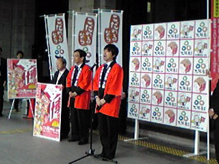 今日もイベントに関するキャンペーン取材にいきました。 今日の主役は何と言ってもこの方(o^-')b マイクに向かって話されてる方です。 何度お会いしても笑顔がステキです♪ ちなみに… そのイベントとは2枚目ののぼりに書かれている 『'09食博覧会・大阪』です。 内容はまたゆっくりとf^_^; ※前回、『記者会見』のまとめコメレス あの記者会見もこの『'09食博覧会・大阪』の 記者会見でした。 新聞各社、テレビなど50社ほどが参加されました。 関西ではテレビニュースで流れたり、 新聞に載ったんですよ。 あっ、私の前が空席なのは時間が早かったからですf^_^; *☆*⌒* AKIKO *⌒*☆*