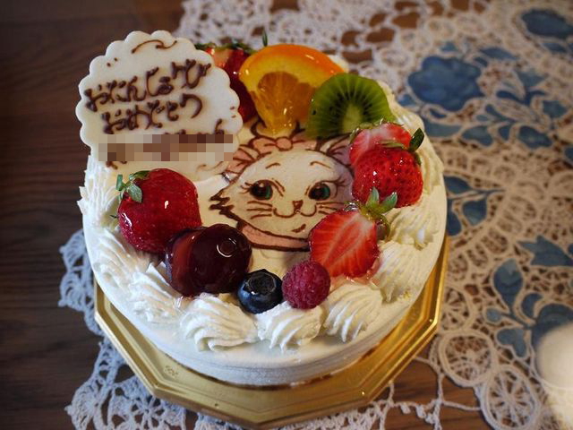 今年のお誕生日はれいの大好きなマリーちゃんのケーキでお祝いしました