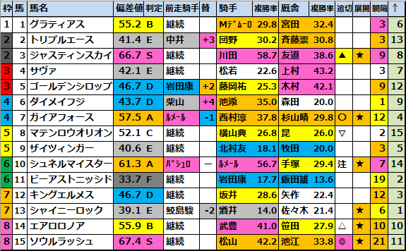 馬券的妙味が無いので今回は2パターン予想です。