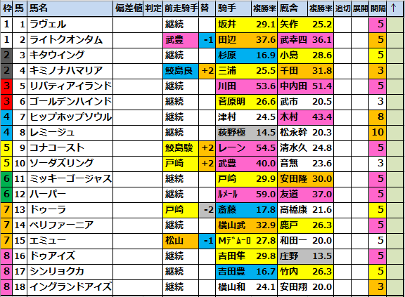 5枠の ​武豊騎手の隣枠が来る!​ と言うジンクス?があり、